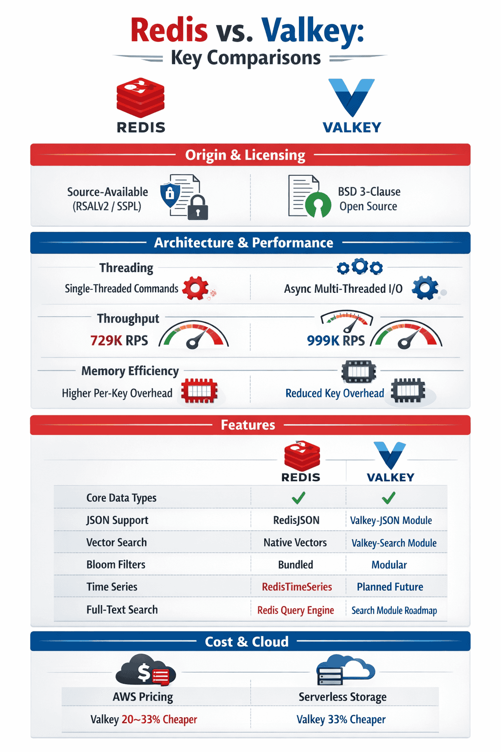 Cloud provider alignment matters. AWS and GCP are betting their managed services on Valkey.