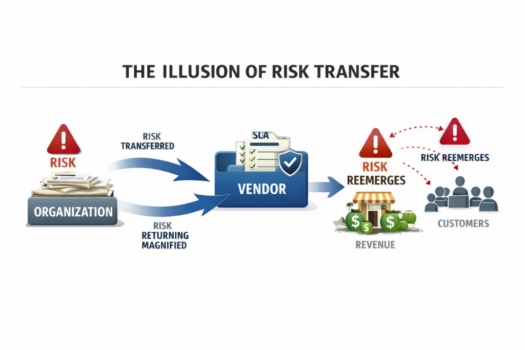 Everything feels too expensive, too difficult and too slow. Under that pressure, a familiar thought pattern emerges. If only we could transfer the risk to someone else. If only we could write enough SLAs, sharpen enough penalties and load the contract until gravity itself guarantees success. If only we could hire lawyers, run a massive outsourcing RFP and make the uncertainty go away.