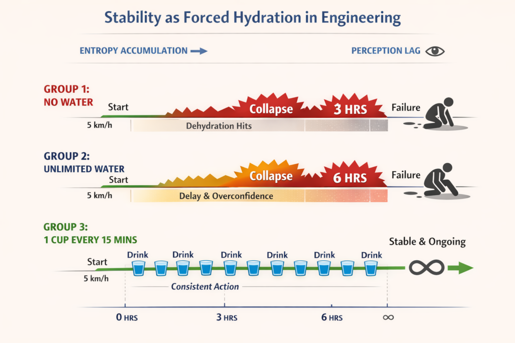 So the real question is not how much stability do we want? It is how do humans reliably maintain something that is always degrading, even when it feels fine?