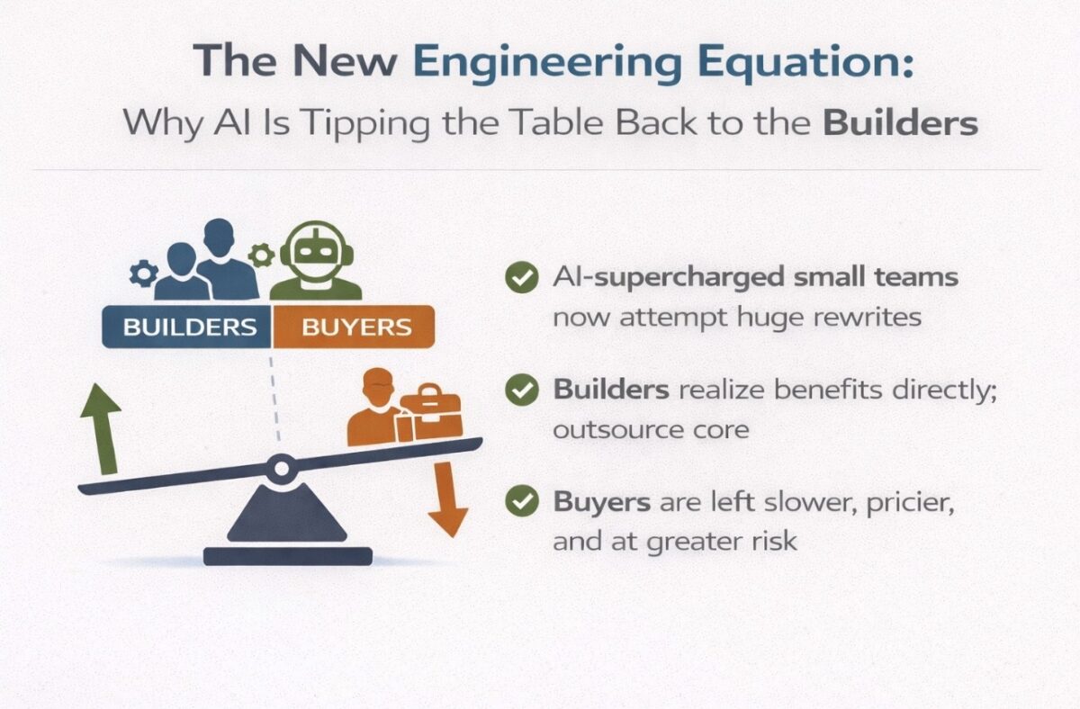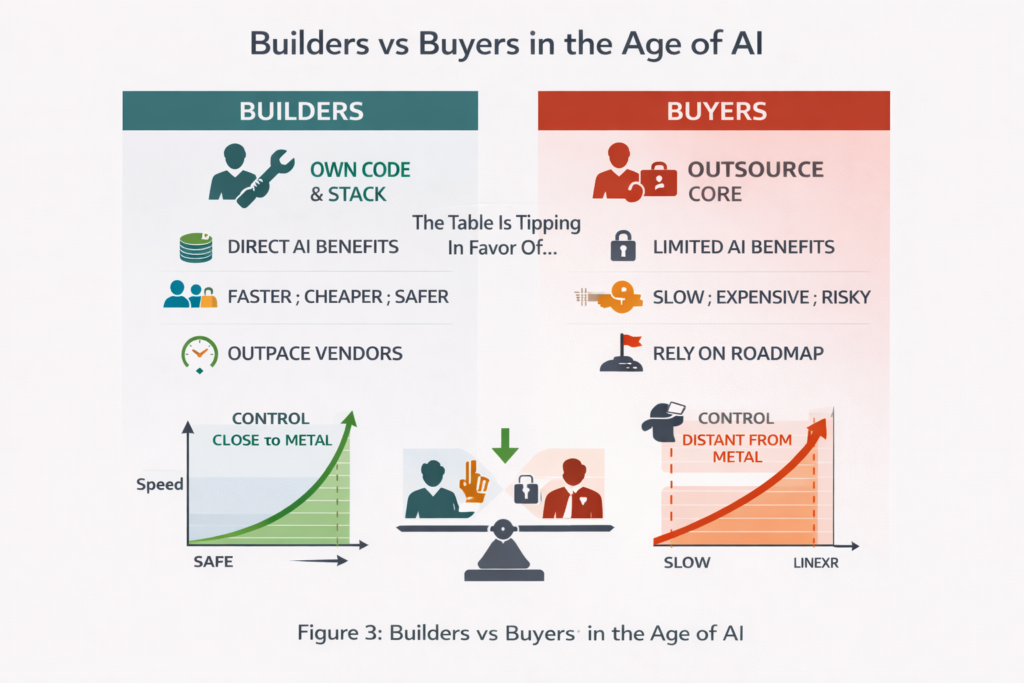 For the first time in a long time, small, highly capable teams can out execute organisations that outsourced their core competence. The table, at least for now, is tipping back toward the builders. Buying software is not wrong. Buying your core increasingly is.