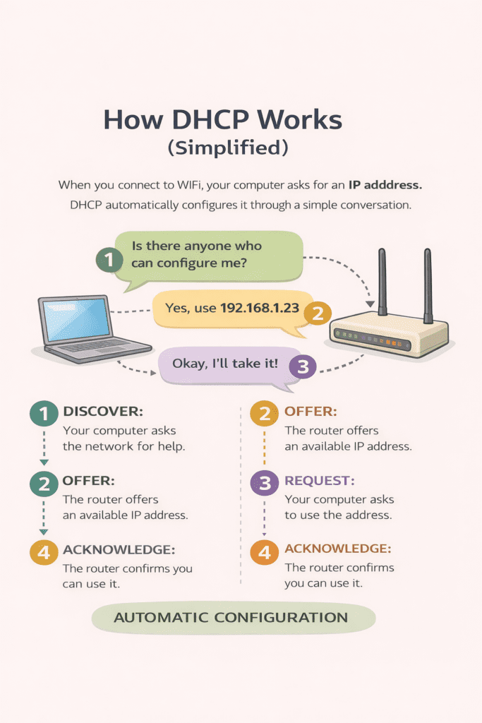 DHCP exists because manual configuration does not scale. It allows networks to: