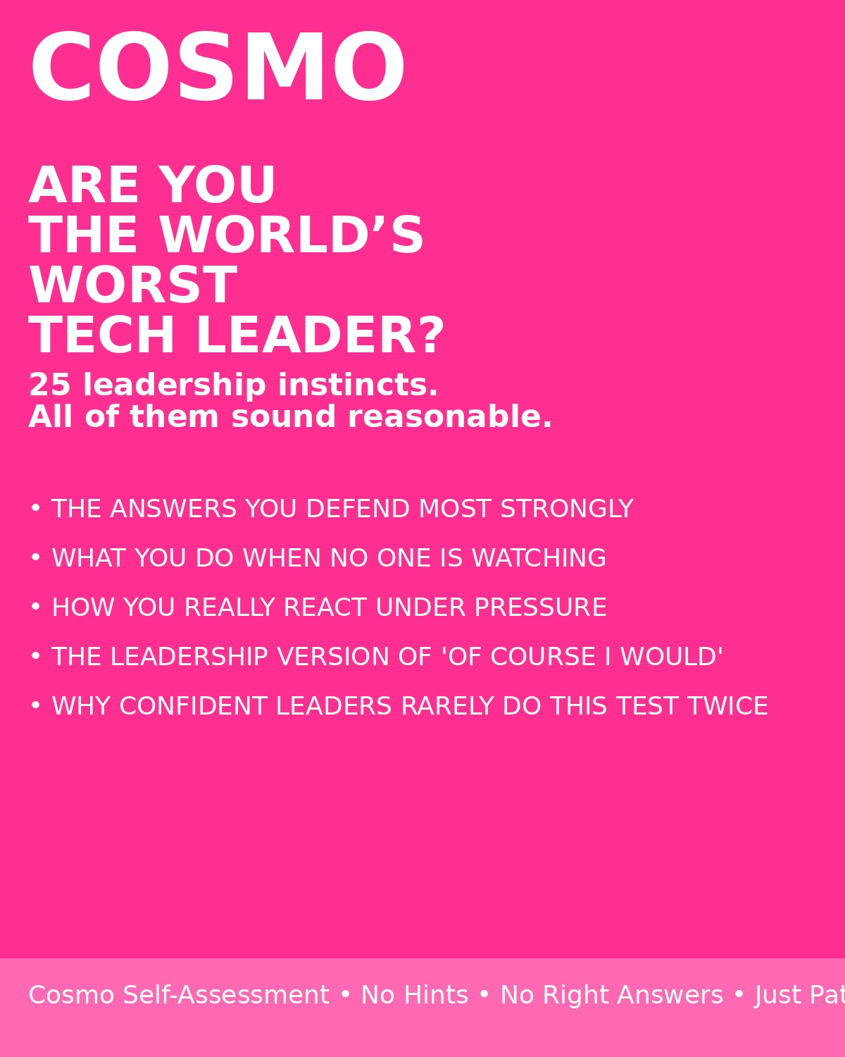 This is written like a Cosmopolitan quiz for people who run technology at scale. Every option is phrased to sound reasonable, responsible, and professionally defensible. That is the point. The wrong answers are rarely stupid. They are seductive.