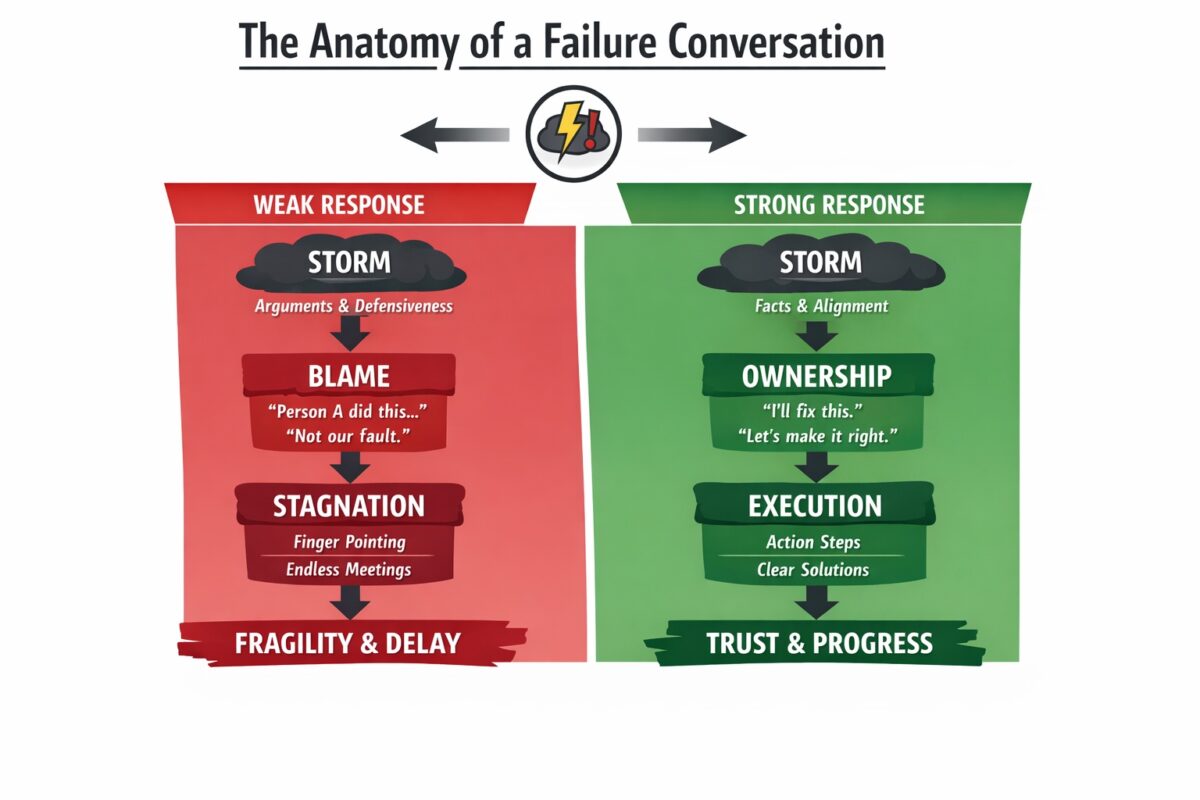 Leadership failures rarely announce themselves politely. They arrive disguised as “can we just check in?” or “let’s align on a better way of working.” It sounds constructive, even mature. But scratch the surface and the origin story is almost always the same: something went wrong, and the organisation does not know how to deal with it cleanly. What follows is a predictable, energy wasting ritual. And the organisations that repeat it are fragile by design.