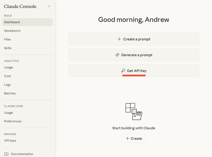 Step 1 Go to console.anthropic.com and create an account. You’ll need to add a credit card, but Anthropic gives you a small credit to start with.