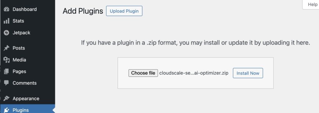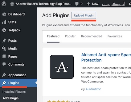 Go to your WordPress admin: Plugins → Add New Plugin → Upload Plugin, choose the zip file you just downloaded, then click Install Now and Activate Plugin.
