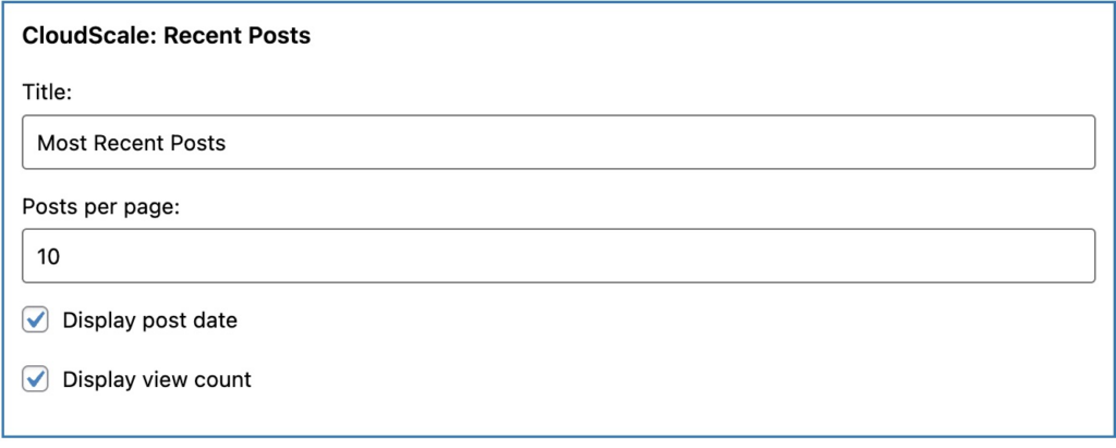 CloudScale Recent Posts : Widget Settings