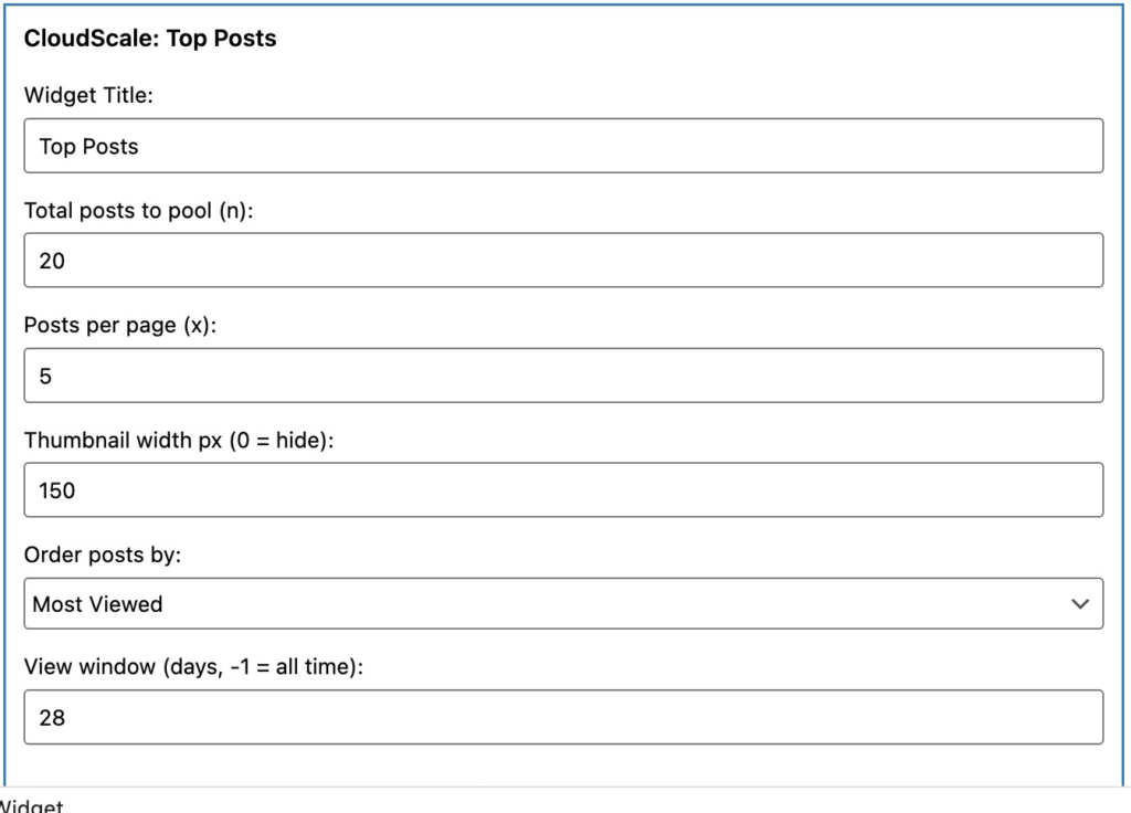 CloudScale Top Posts : Widget Settings