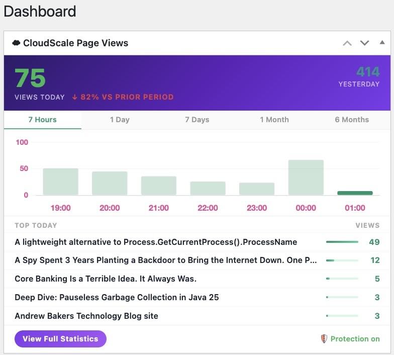 CloudScale Page Views fixes this. It is a WordPress plugin I built specifically to solve the CDN counting problem. It counts every single view regardless of whether the page was served from Cloudflare’s cache, your origin server, or anywhere in between.